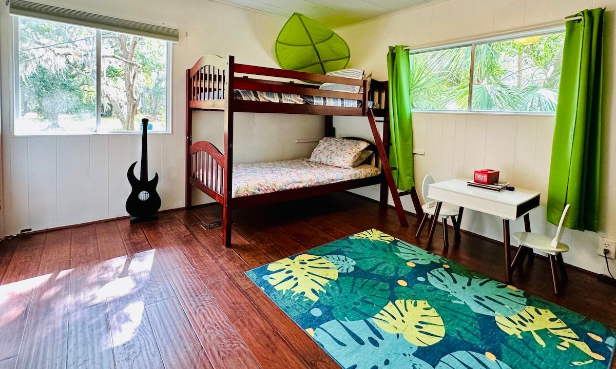 Welcome to our charming 2-bed, 2-bath Home nestled right on the serene Bullfrog Creek! Situated on 4+ acres of lush land, our property is a haven for outdoor enthusiasts and nature lovers alike.Come experience the beauty of nature at our bamboo farm vacation rental. Book your stay today and create unforgettable memories surrounded by the tranquility of Bullfrog Creek.