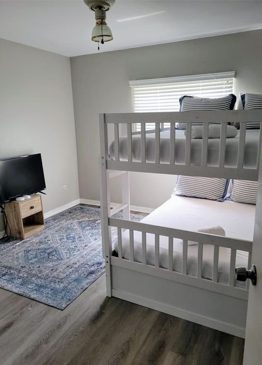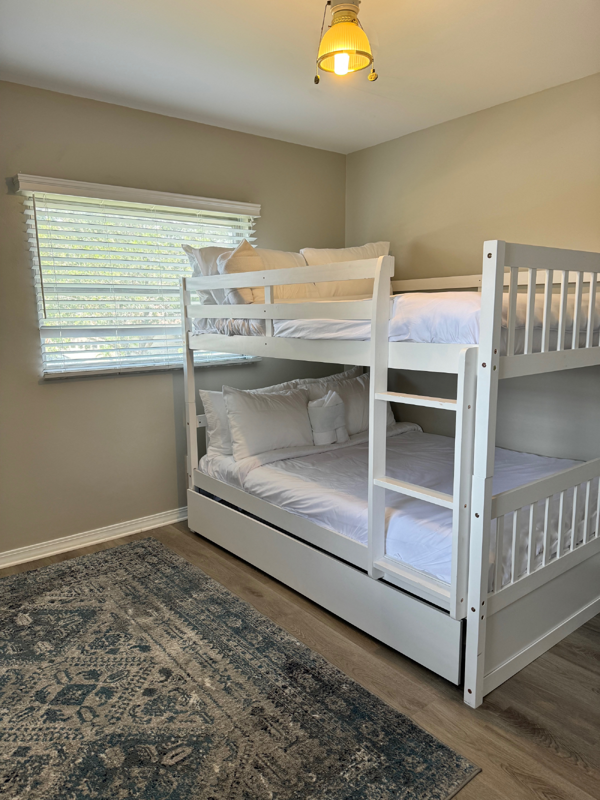 Welcome to our stunning modern home, designed for relaxation and family fun. This spacious retreat features a sunroom and a sparkling pool, offering plenty of room for everyone to enjoy. With ample space, our home is perfect for families. Kids will love the bunk beds, and adults can unwind in the large master suite. Our home boasts contemporary decor and high-end finishes, creating a stylish and comfortable environment for your stay.